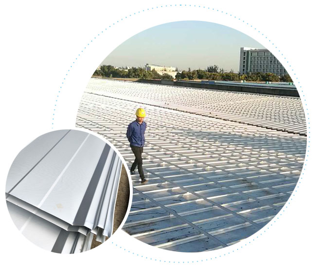 精鋼防腐鋼塑板施工同彩鋼瓦一樣,可以壓制任意瓦型,強大度,可以應用于大跨度廠房。