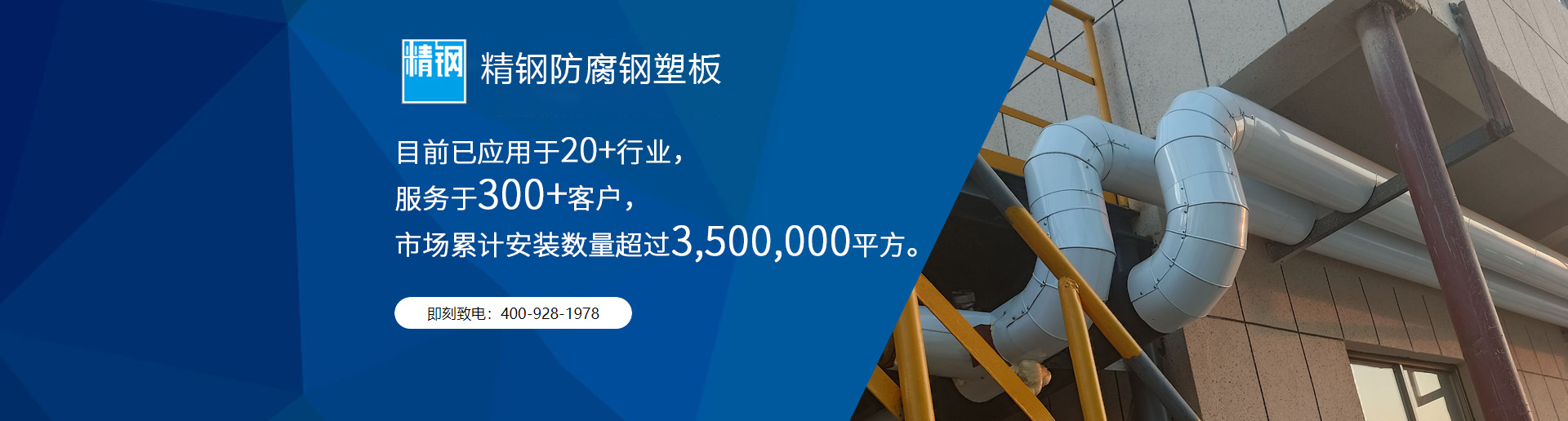 精鋼防腐鋼塑板可以完美包覆各類設備和粗細管道,美觀大方,保障設備和管道在腐蝕性環境下正常運行!
