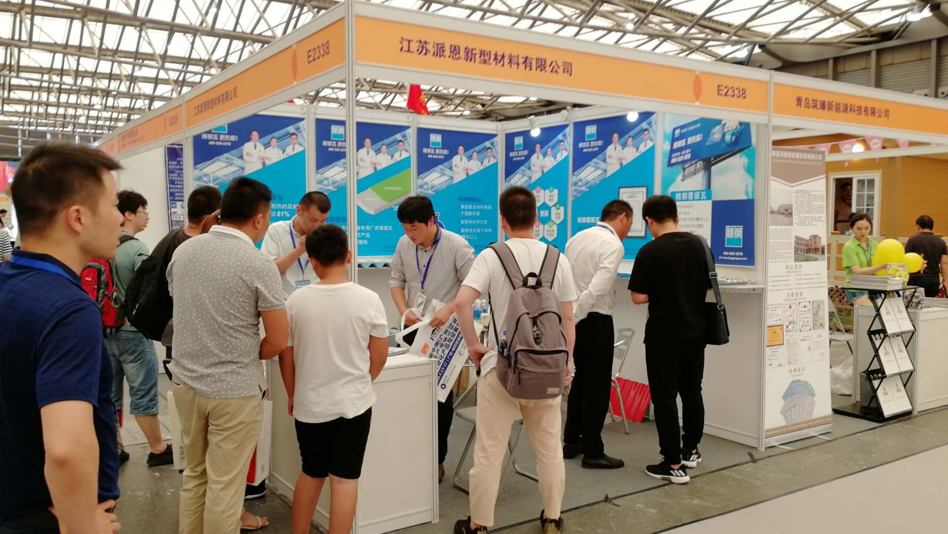 展會進行期間,從全國各地前來參觀的客戶絡(luò)繹不絕,其中有知名設(shè)計院的設(shè)計師,建筑工程公司的高層領(lǐng)導(dǎo),屋面建筑材料的業(yè)內(nèi)同仁,還有前來考察合作項目的外國友人。大家對江蘇派恩的精鋼覆膜瓦和各式樣品好奇不已,紛紛上前圍觀,認真翻閱宣傳冊資料,仔細聆聽宣傳介紹,詳細咨詢關(guān)于精鋼覆膜瓦的材料組成、產(chǎn)品性能以及安裝施工等具體事宜,江蘇派恩的現(xiàn)場工作人員一一為客戶熱情講細地解答。精鋼覆膜瓦以其優(yōu)良的品質(zhì)、卓越的性能受到了客戶的一致肯定與高度評價。